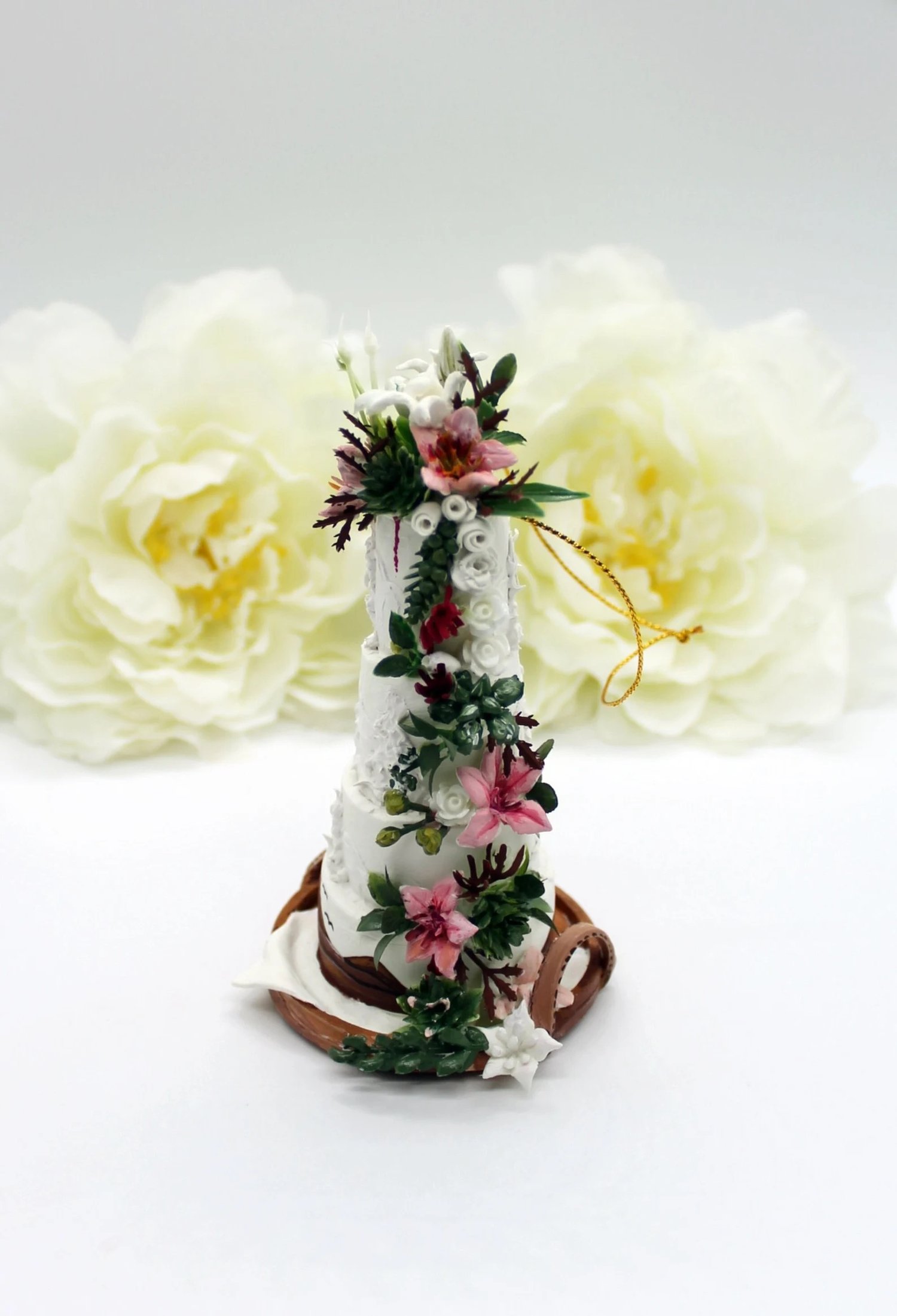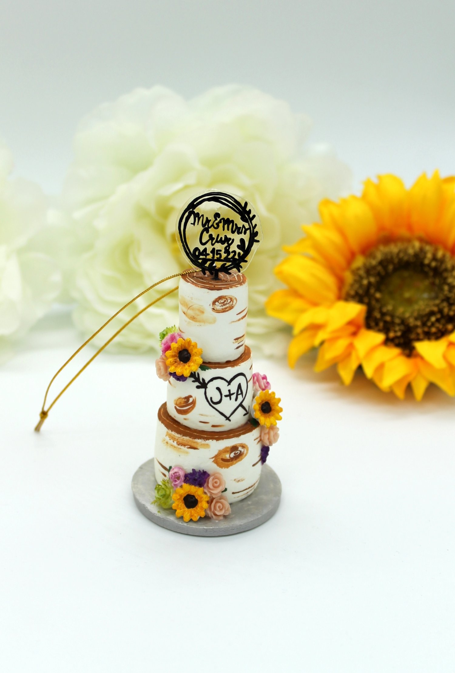 Capture the cherished memories of your special day with my handcrafted cake replica ornament. Whether displayed on your Christmas tree as a treasured holiday tradition, showcased on a dedicated shelf year-round, or even gifted to a newlywed couple embarking on their own journey of love, this cake replica ornament serves as a tangible reminder of the commitment and joy that weddings symbolize.