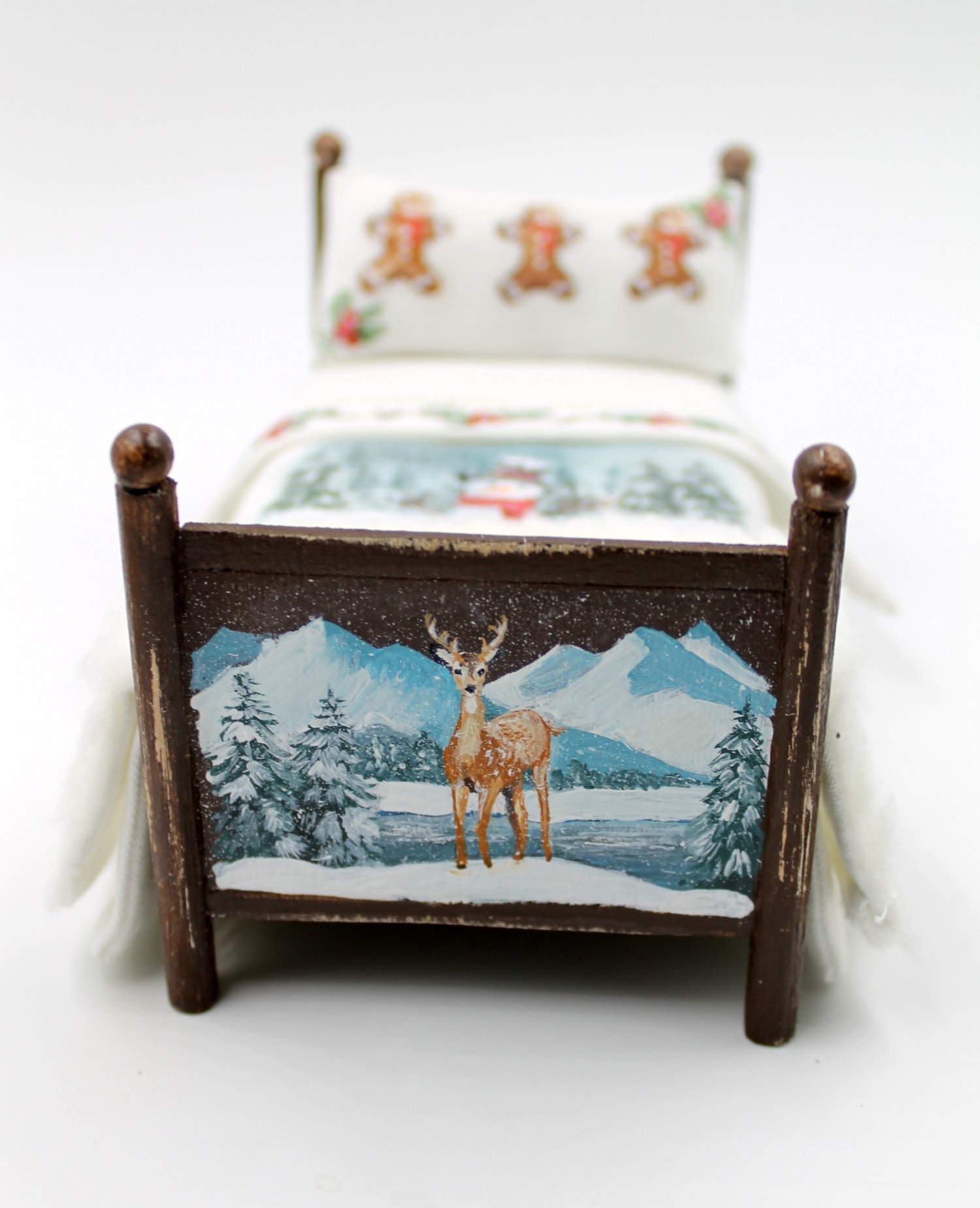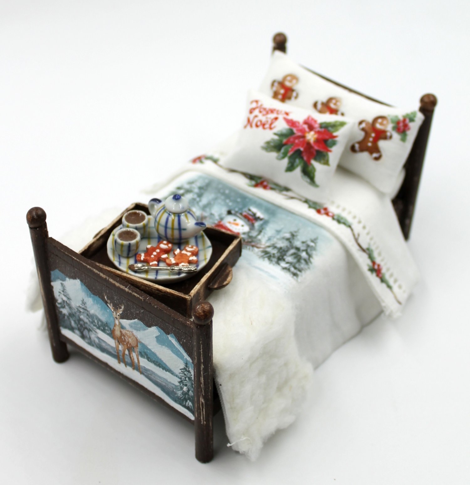 Whether you're an avid dollhouse enthusiast or searching for a unique gift for a collector, this winter themed miniature bed is sure to delight.
